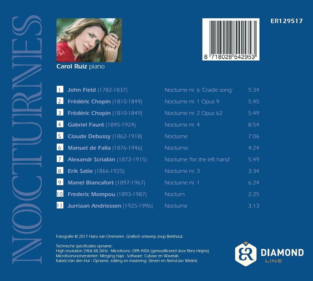 Deze cd neemt ons op een droomreis met nocturnes voor piano van verschillende componisten van alle tijden. Van traditionele romantisch zoals Field en Chopin tot postromantisch zoals Faure, een jonge Debussy en Scriabin. Maar ook Satie, de catalaanse Mompou en Blancafort, een de jonge Spaanse de Falla en zelfs de Nederlander Andriessen.